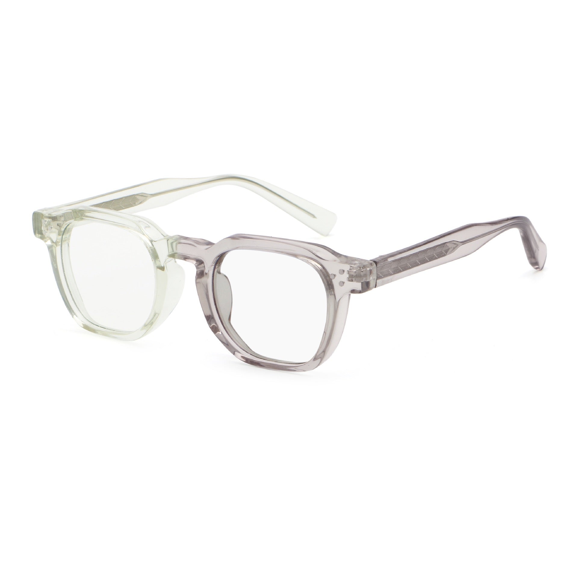 Lightweight injection acetate frame with durable PC clear lenses. Comfortable fit for all-day wear, perfect for work, reading, or daily style. Minimalist design suits various face shapes.